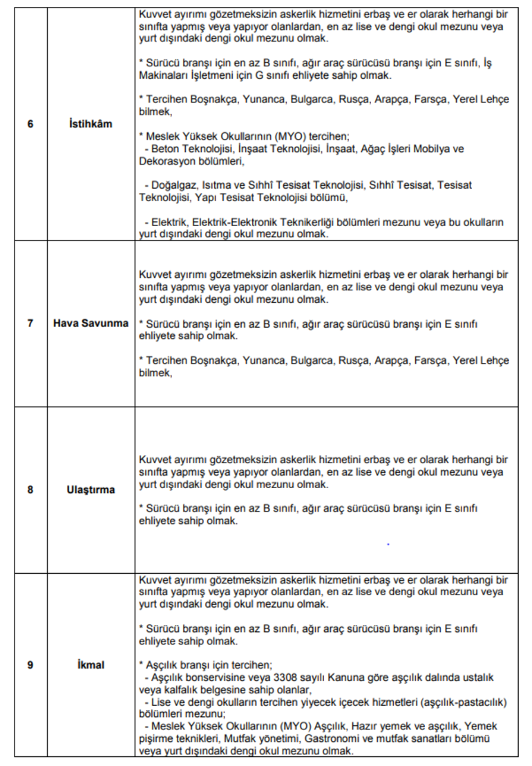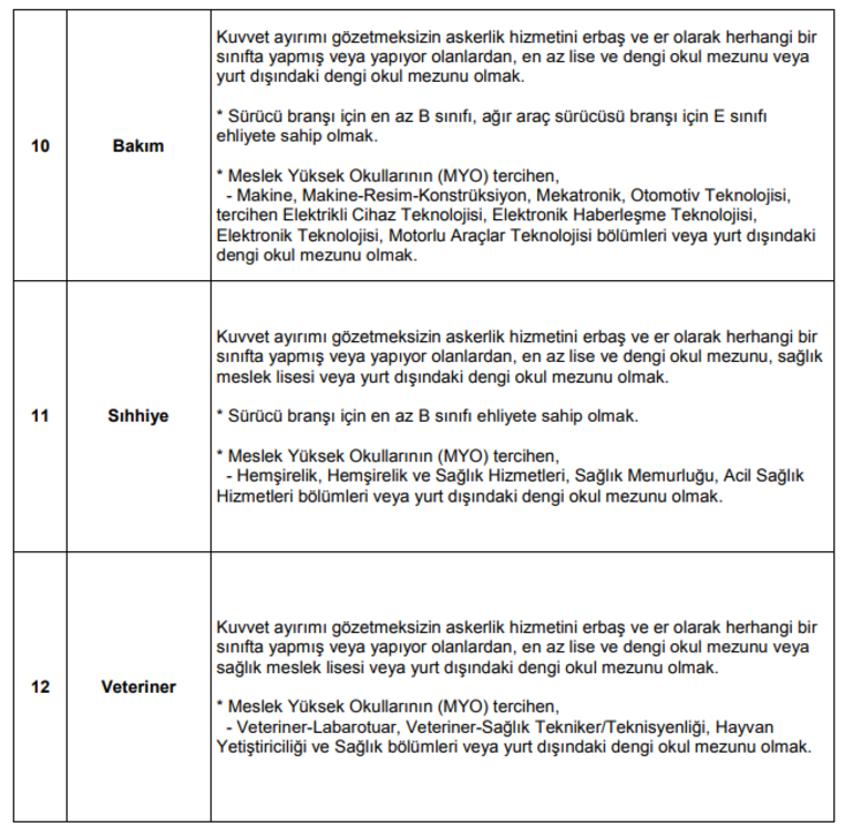 uzman erbaş alım şartları
