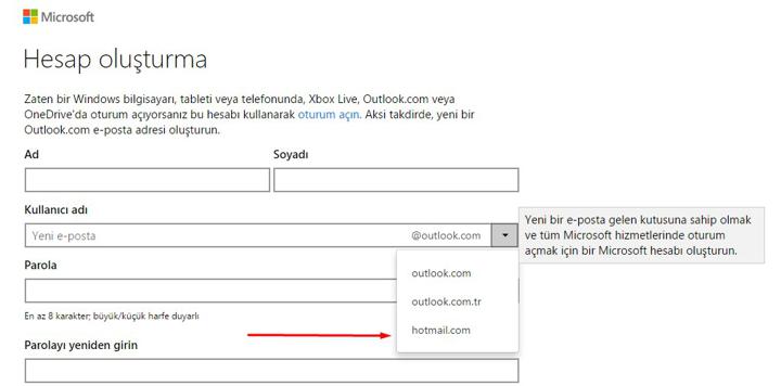 yeni hotmail adresi al